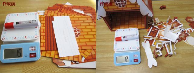まずは「ペーパークラフト作成の秒数を、普通のノリと秒速封かんのりでつけ比べ」です。