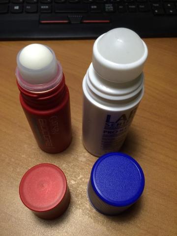 また、うちに前に買った他社のデオドラントロールオンがありましたので、比較しますと、ボール径の大きさが使いやすさにつながっているなと感じました。