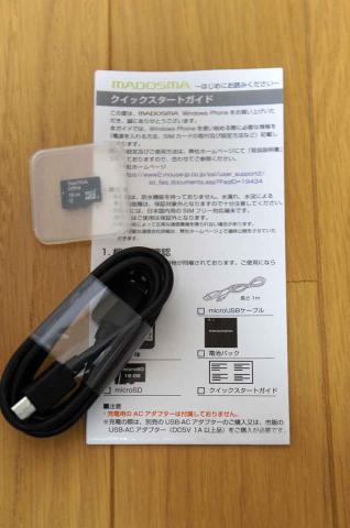 付属品は、充電ケーブルとMicroSDです。MicroSDはSanDiskの16GBでした。
