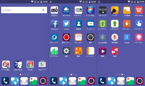 ホームランチャーアプリを入れれば普段のAndroidと同じような使い勝手になるので、お好みで。