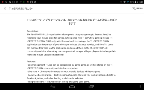 モバイルアプリはユーザにTt eSPORTS PLUS+ Community & Data Management Platformというプラットフォームを提供し、そこでさらにユーザの統計を詳しく分析し、プロゲーマの使用状況とも比較したり、お友達にマウス使用で挑戦したりできる。Tt eSPORTS PLUS+ mobile applicationiOSとAndroidの両方に対応しており、ダウンロード、インストールできる。