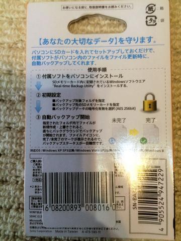 しかし、たまにその作業を忘れていたりすることもあり、自動バックアップ環境を何か考えた方が良いかと思い始めていました。専用のバックアップソフトを用意することも考えましたが、とりあえず手軽な方法としてバックアップソフトが添付されているSDメモリーカードを用意してみることにしました。