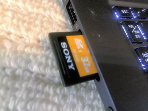 今までTAICHI 31でSDメモリーカードを使ったことがなかったので全く気付かなかったのですが、このPCのSDスロットはカードが装着時に大きくはみ出るタイプであり、カードを挿し放しにすることが出来ないのです。