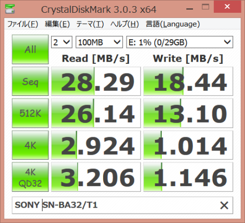 まずは速度性能を測定してみました。今回はTAICHI 31の内蔵スロットでの測定となります。