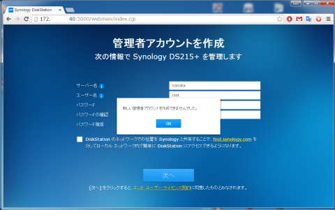 このつぎにHDDの初期化、DiskStationの初期設定を行います。