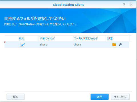 同期する共有フォルダを選択します。ここではShareを同期する設定にします。