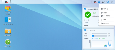 右上のメーターみたいなマークを押すと、システムの状態が表示されます。