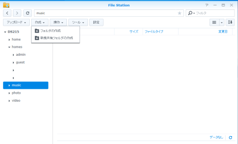 以上で、PCの中の楽曲データなどがDS215にコピーされ、複数のPCから使うようになります。