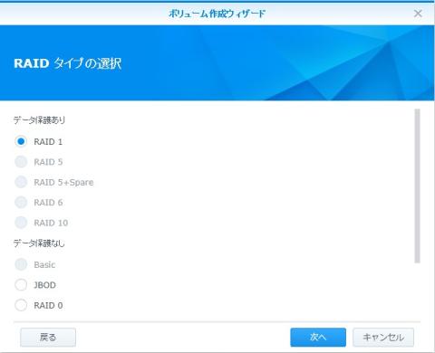 RAIDレベルを求められます 2DRIVEではRAID 0, 1, JBODのみ選択できます