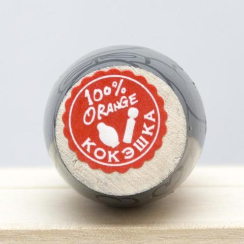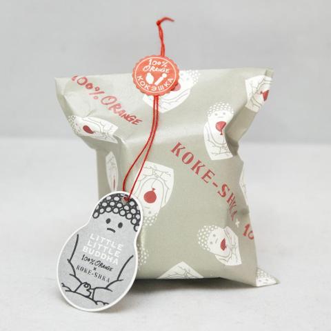 そして外側の人形の底にはこちらも「100%ORANGE KOKE-SHIKA」のシールが貼られています。