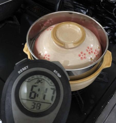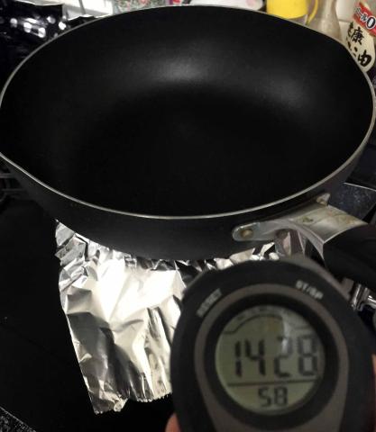ガスレンジで中火で下からあぶります、ガスコンロは火力が強いので、強火だと空だきになりそうで怖いです・・・(^_^;)
