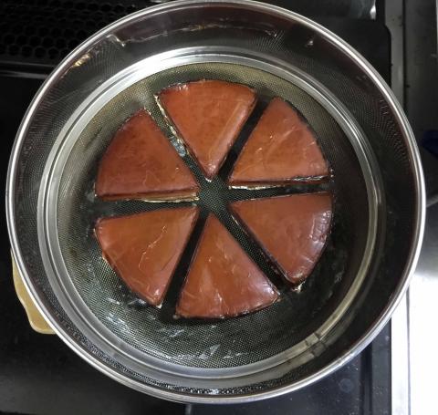 手抜きで申し訳ないですが、上にフライパンを置いて重しにしました