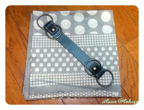 本品は袋状にした風呂敷の端に取り付ける事で、バッグの持ち手の様になりどんなモノを包むにもそれなりに見えます。
