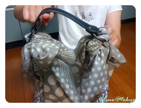 ピタッとモノを包んでいる訳ではないのでちゃんとした風呂敷使いの人から見ると邪道かもしれませんが、何より風呂敷をバッグとして使うのってちょっと洒落てますよね。