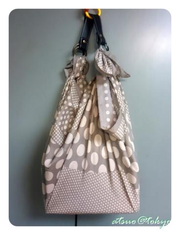 隅同士が結ばれているので、風呂敷は袋状になっており、そこにモノを入れバッグの様に使うことが出来ます。