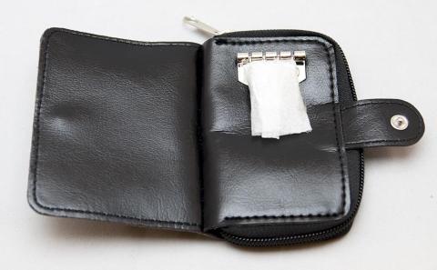 肝心のオマケは「オロビアンコのキーリング付き本革財布」です。