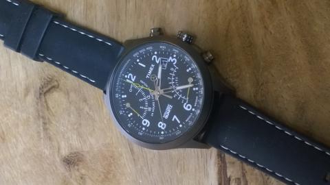 クオーツだから一秒づつの運針なんだけど、シッカリした秒針の音や、クロノグラフ稼働時に「チチチチ……」と1/5刻みで微かに聞こえる音と無骨で工夫していないように見えるデザインがクラシカルな機械式を思わせます。