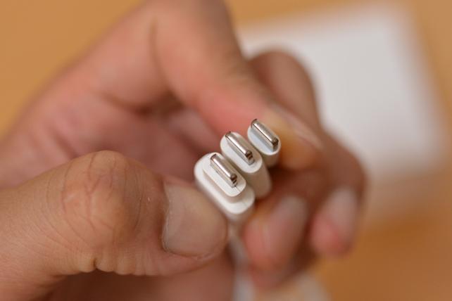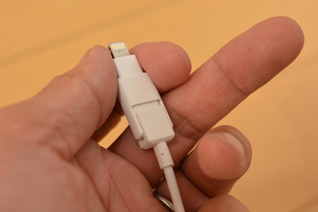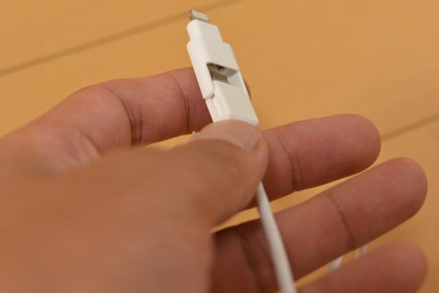 ライトニングのコネクタ部分をつまんで、まっすぐ伸ばします。