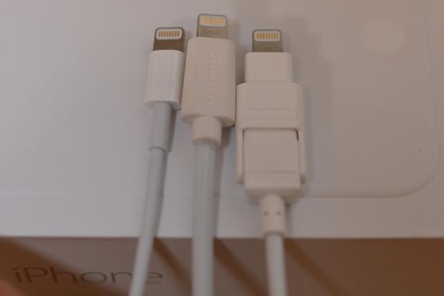 iPhone純正ケーブルと比べると、コネクタ部分が厚いのですが、