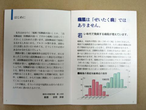 以前、お医者さんからいただいた冊子です 痛風の原因とか治療法など書かれています..