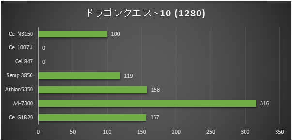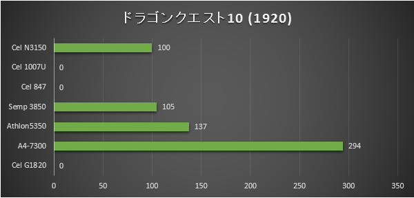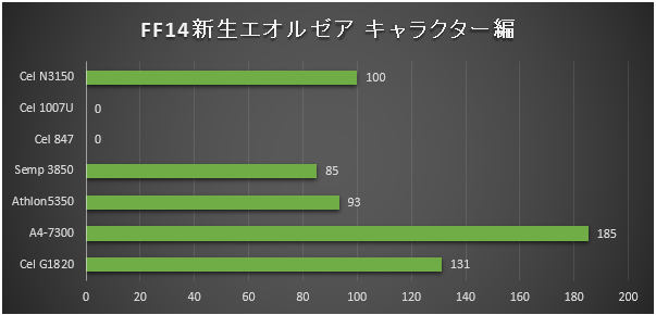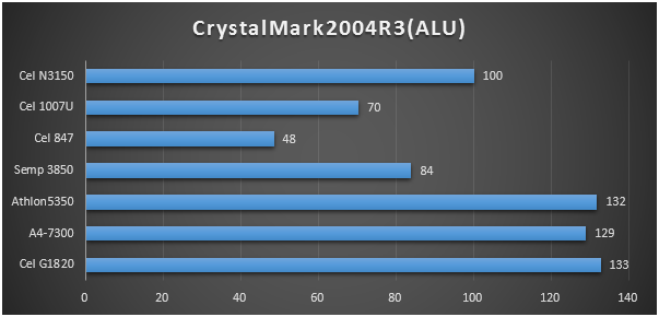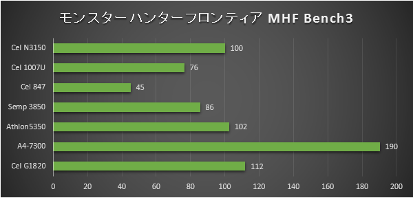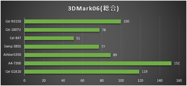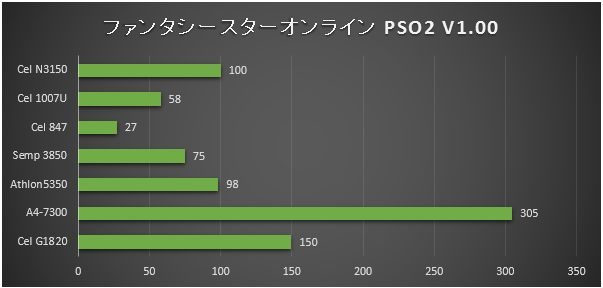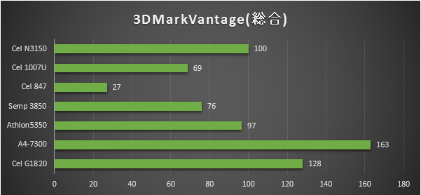 ただ、メインストリームの最下位モデルであるAPUのA4-7300にダブルからトリプルスコアの差を付けられており、ゲームPCの為にN3150を使用するのはナンセンスと言えるでしょう。