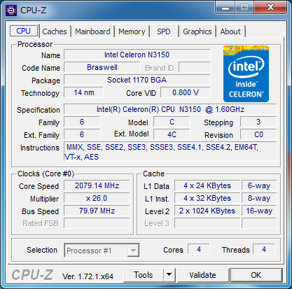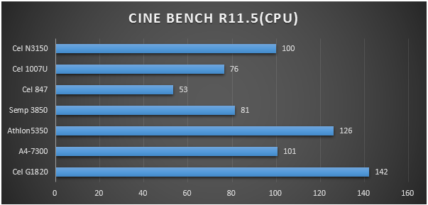 性能的に見るべきものはありませんが、Sempron3850がTDP25Wに対し、Celeron N3150はTDP8Wなのでワットパフォーマンスがかなり良いと言えるでしょう。