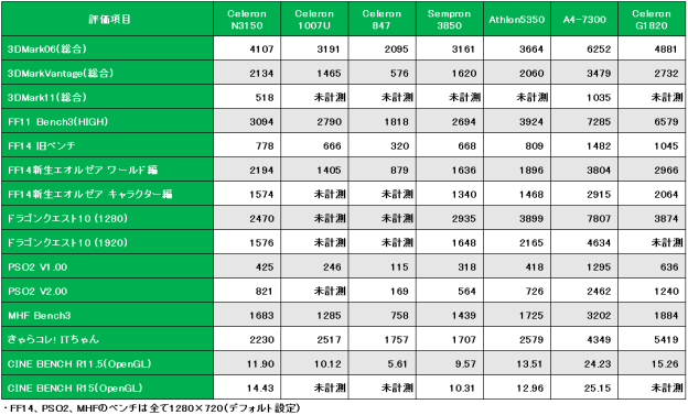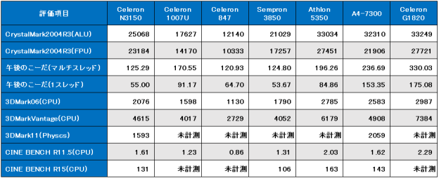 Celeron N3150以外のベンチは私の過去のレビューの使いまわしです。