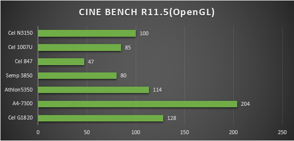 Celeron N3150のグラフィック性能はゲーム向けでは無いのですが、意外と検討しており、多くのベンチでAthlon5350と肩を並べています。こちらもTDPを考慮するとワットパフォーマンスに優れていると言えるでしょう。製造プロセスが14nmの効果はそれなりにあるようです。