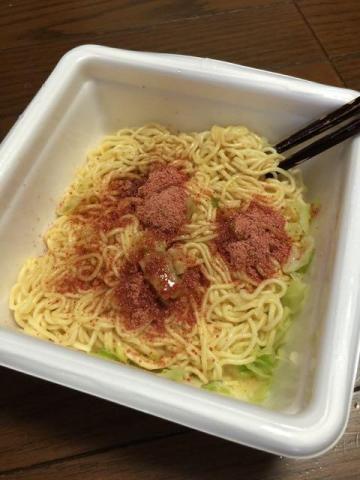UFOといえば、カップ焼きそばの中ではかなり早い段階で濃い味を出してきたブランドですが、今回のたらこはその個性的なソースをバッサリ置き換えたものです。