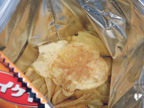 みかんの甘みと酸味が、香ばしいポテトチップスに不思議にマッチした、ほんのり甘く、さっぱりとした、新しいおいしさのポテトチップスです。