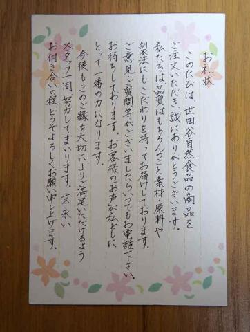 内容は決まった文章なんでしょうが、手書きでした。ビックリしました。