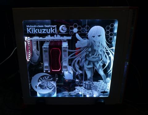ここはアクリル彫刻のロゴの背後になるので、光るファンだとロゴをかき消してしまうし、明るい色のファンですら結構かき消される。