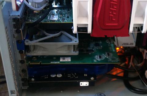 元々拡張カード類の色やサイズが不ぞろいなところに青いマウンタが目立ってしまったので、やはり側面マウントで拡張カードを隠しつつ冷やしたほうがいいと2時間くらい組み替えて結局元に戻した。