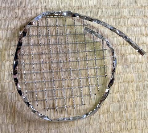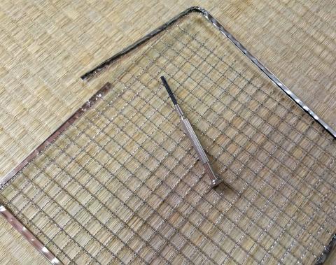 したらサイドの金具をドライバーで押し開き外します、再利用するため、焼き網は端が溶接している物ではなく板留している物を選ぶと良いです