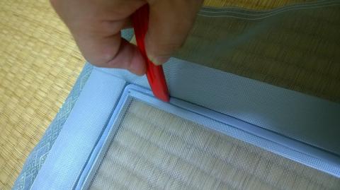 今まで、3尺×4尺くらいの網戸を張り替えた事はあったのですが、縁ゴムを押し込むのはドライバーを使ったりしていました。