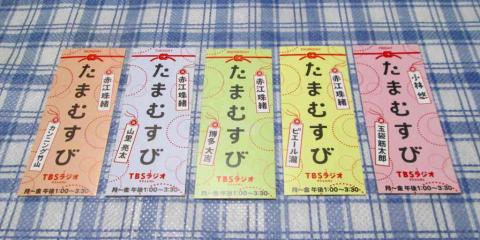 ステッカーは週によって異なるデザインで、5種類集めると Tシャツがもらえます( http://www.tbsradio.jp/tama954/tama_t.html )。