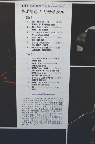 はしだのりひこ、越智友嗣、杉田二郎、故・井上博 シューベルトが何故シューベルツ(靴紐)になったのかは不明です 「風」「さすらい人の子守唄」「白い鳥にのって」がヒット曲です