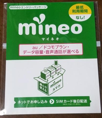 とある個人ブログのサイトを中心に見ていて、通信速度の速い会社は何処だろうと思って調べていたらmineoが格安SIMの中では割と上位に上がってたので、DMMやよく分からない会社のSIMを契約するくらいならまぁ、いいだろうという理由で契約しました。(なんて理由だ・・・ ありえねぇ適当過ぎんだろ・・・) 一応、候補としてはBiglobeやOCNも入ってました。でも、やっぱりランキングだよね。何せ平日の昼間でも遅くなりにくい会社となったら現時点でmineoしか上がってなかったから・・・ それでもdocomoやauといったキャリア回線からしたら遅いけど。