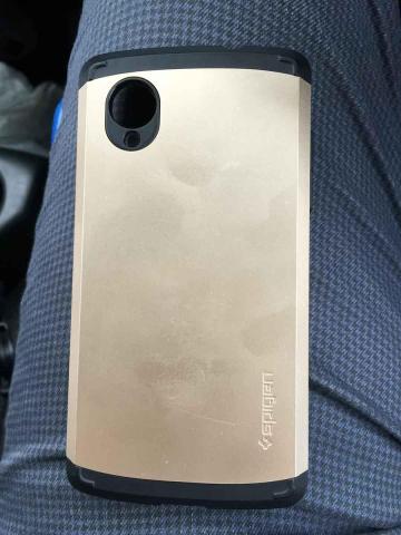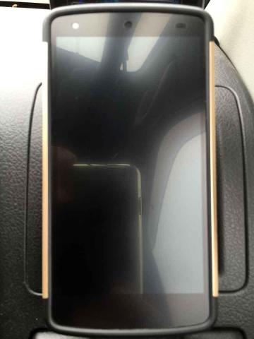 金属プレートを入れたNexus5をピッタンコ。強すぎず、弱すぎない磁力があり、少々のでこぼこ道を走って、車がはねたとしても、スマホが落下するようなことはないでしょう。それだけしっかり固定されています。