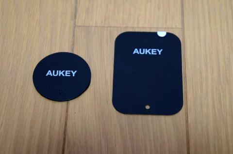スマホ側に貼り付ける金属製のプレート。丸形と四角2枚が付属しています。