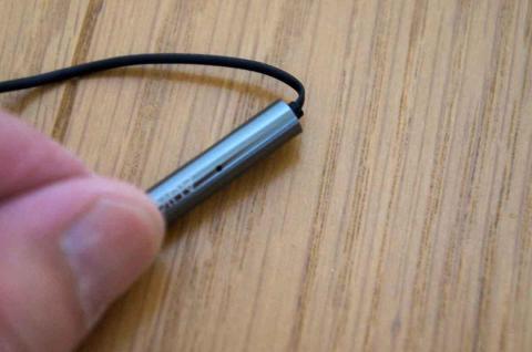 コントロールボタンの背面にマイクがあります。イヤホンを装着した時に、ちょうどマイクが顎の高さになります。