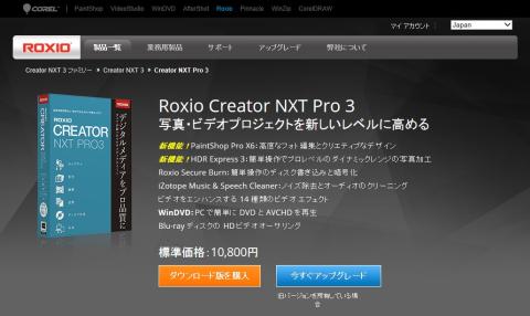 コーレルの取り扱う、日本での取り扱い開始間もない「Roxio Creator NXT Pro 3 」です。