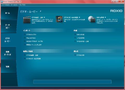 (Roxio Creator NXT Pro 3 のHOME画面)
