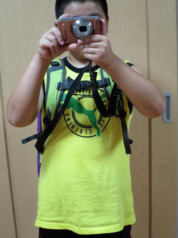 モデル(息子)が小さいため腰より下にカメラがきていますが、腰よりちょっと上にあるぐらいが安定するでしょう。
