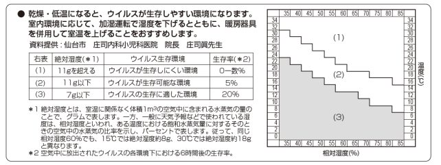 マニュアルによるとウィルスの生存しにくい温度と湿度のグラフがあるので