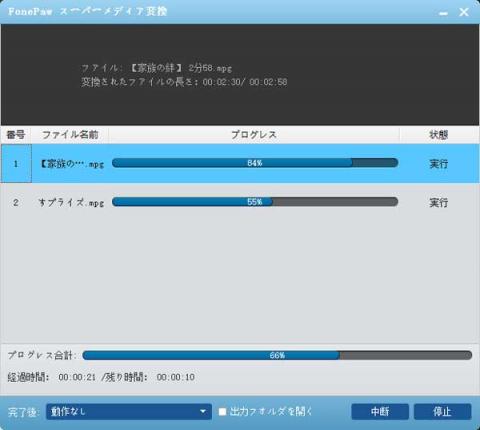 変換機能は強いし、ダウンロードもできるし、やっば買うかwwwと思って公式サイトに行って買いました。今回の価格はWindows版・Mac版共々3980円、妥当な値段でしょう。正式版を購入して早速動画を変換してみた。「ファイルを追加」をクリック、動画ファイルを選択して、それから下のプロフィールでiPhone用のmp4を選び、「変換」ボタンを押せばiPhone用動画の変換が始まります、同時に複数の動画を変換するのも可能。変換の進展や残り時間も確認でき、何より変換スピードが早い、昔が使った無料ソフトよりはるかに優れています。こうも便利だと、これからはもっと多く動画をiPhone入れて見るのも悪くないですね。