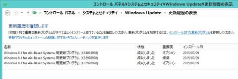 2015年7月8日にWindows8.1 上で、Windows Updateで2件のオプション更新(KB2976978 KB3065988)が現れました。