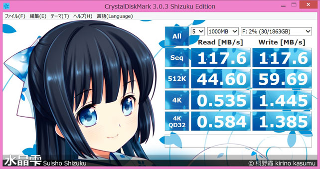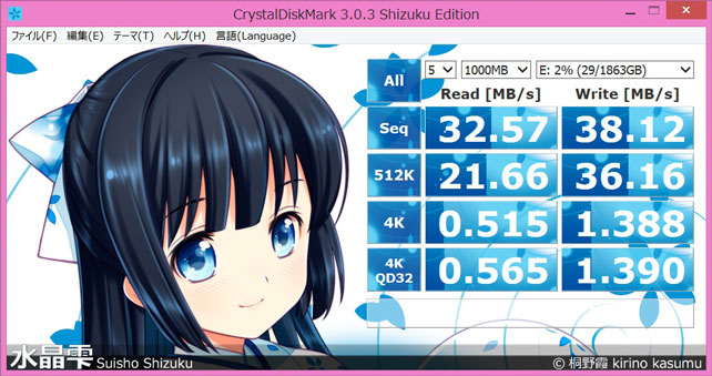 変換なしでUSB3.0の恩恵を得られる我が家のPCは、「Amphis Art Expert」と「LaVie Hybrid Frista」です。そのUSB3.0ポートにつなぎ、測ってみました。これで3.0です。このスピードでバックアップできるといいですね~。