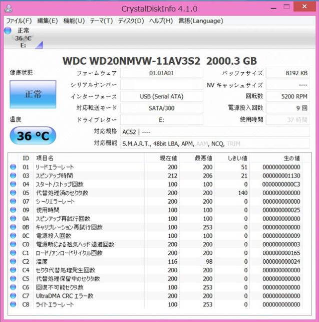 完全ドライブテストもやってみましたが、14時40分にはじめ、21時10分まで、6時間半ほどかかかりました。2TBの大容量だと、さすがに時間がかかりますね~。
