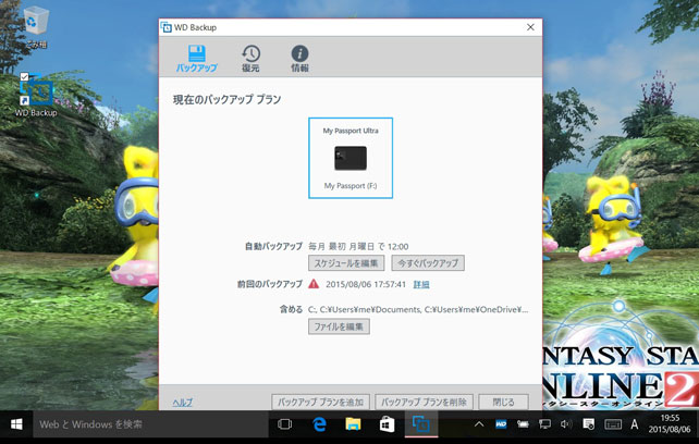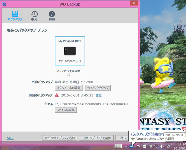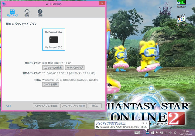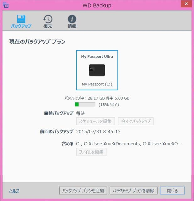 今回はこのバックアップを「My Passport Ultra」のソフトウェアで行いました。もし、いろいろ壊れてしまっても、「復元」すれば、前と同じデータが戻ってくるはず!(本当?)